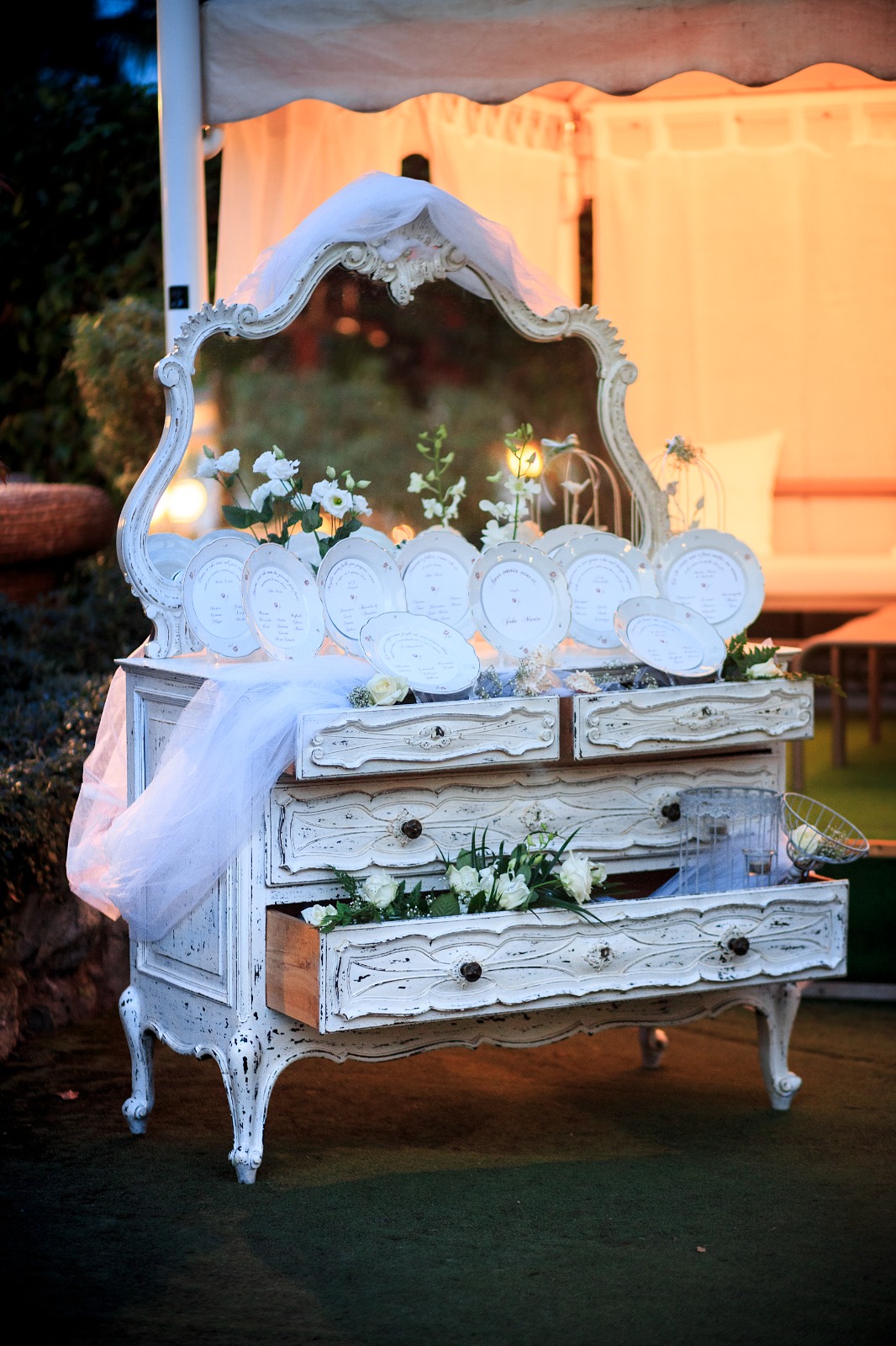 • Comò con specchio, allestito a tableau de mariage