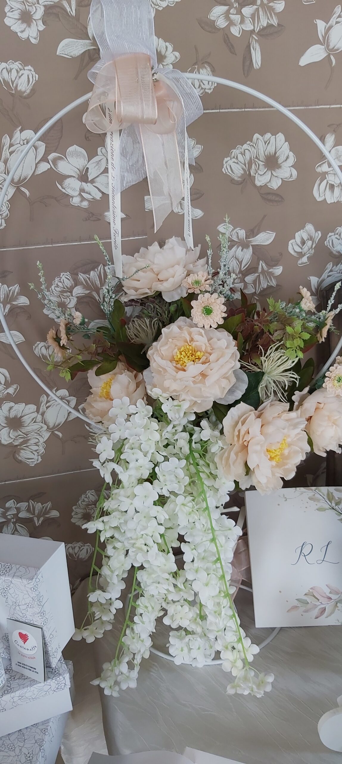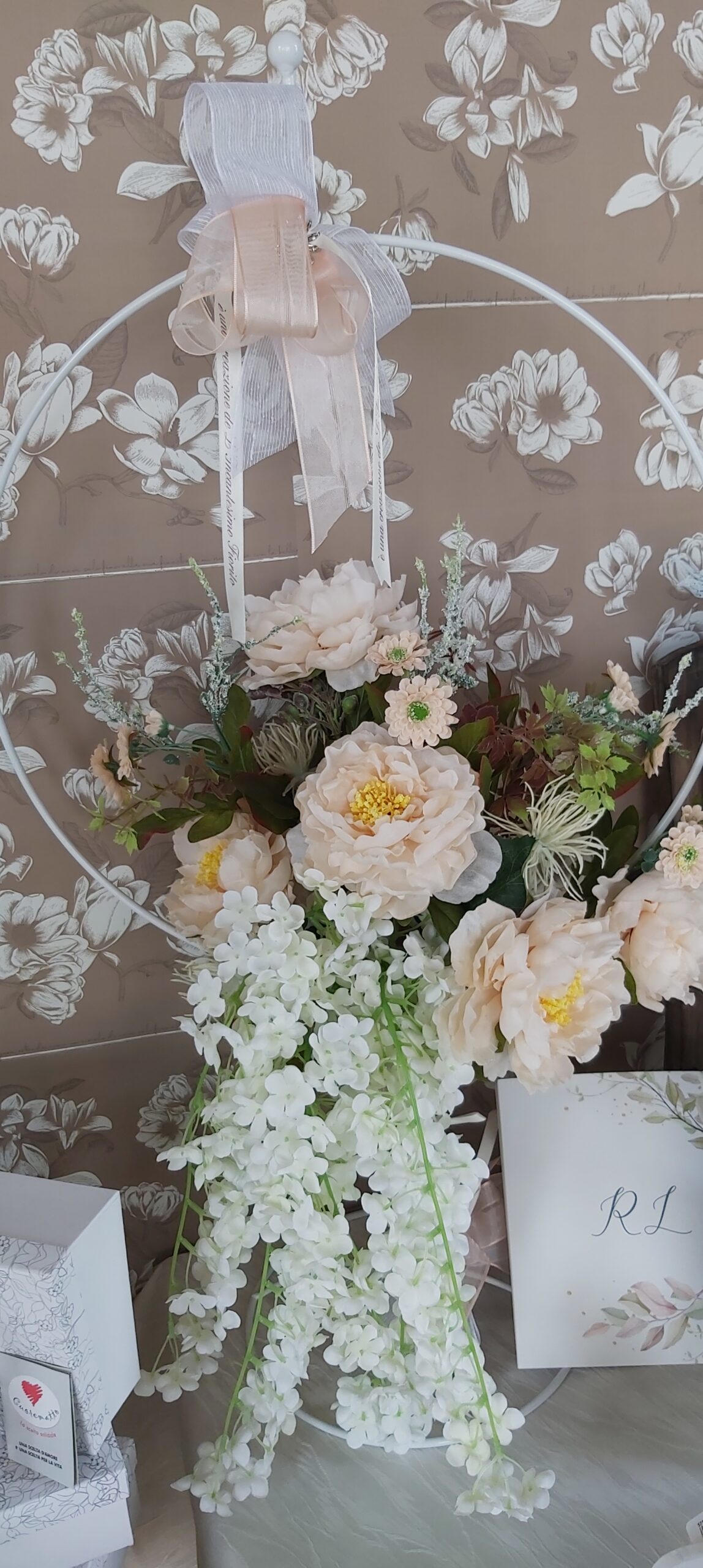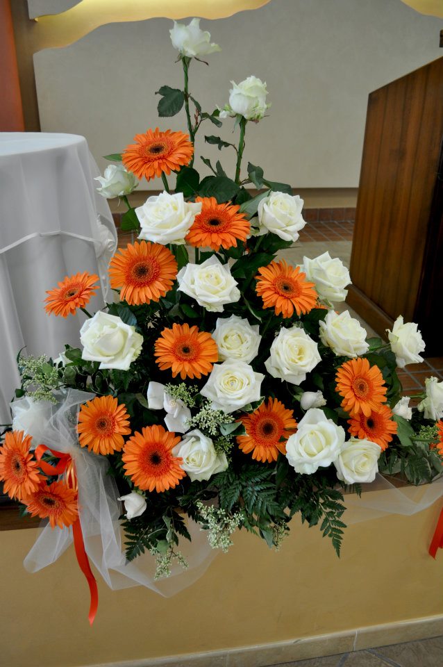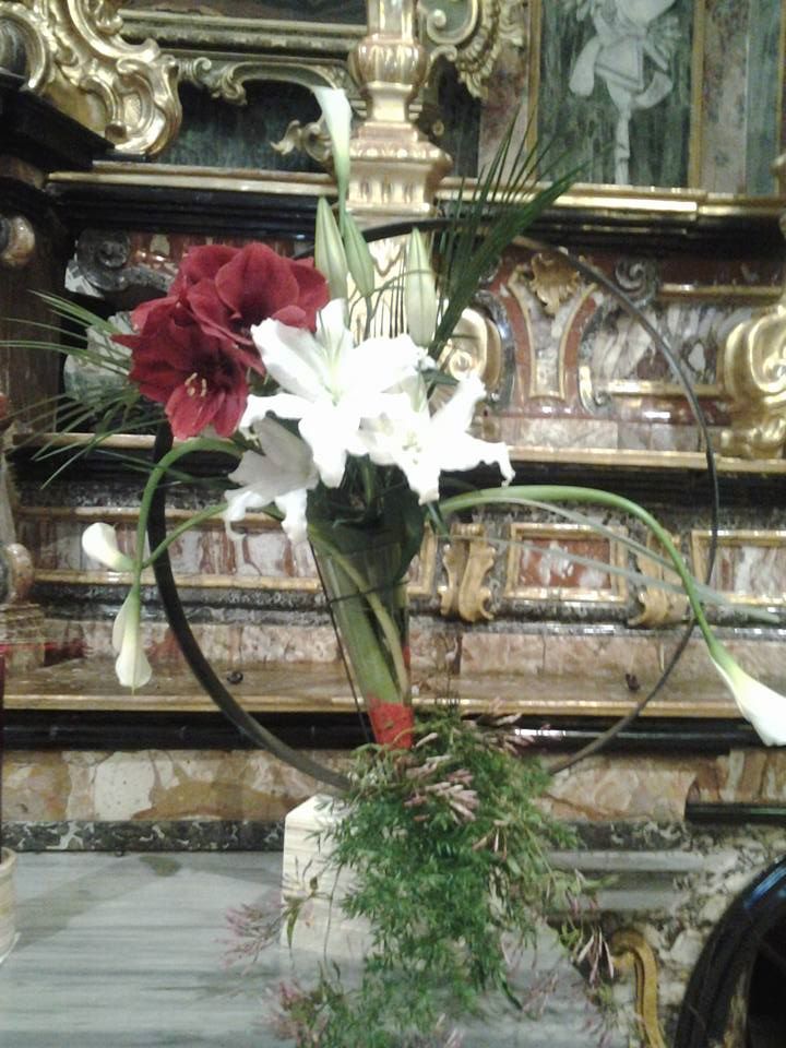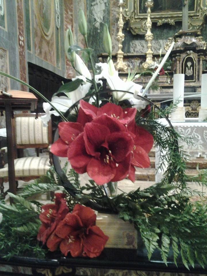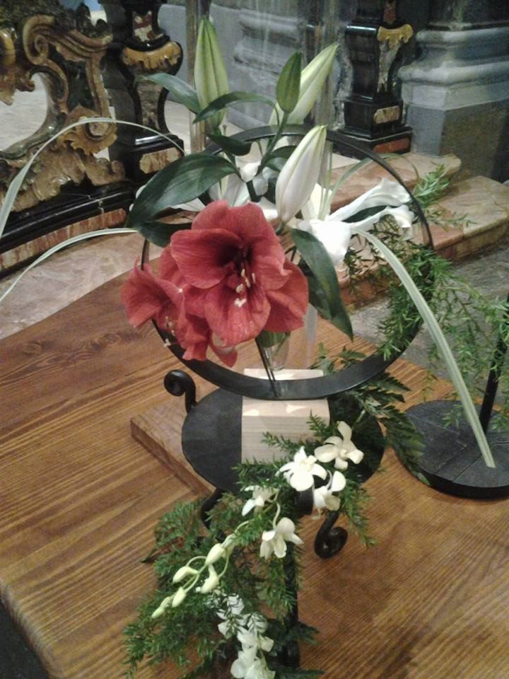 Circle flowers – cerchi floreali con amarillis , calle e gigli Flowers circle con peonie Allestimento dai colori bianco arancio , curando tutti i particolari sia a casa che in chiesa