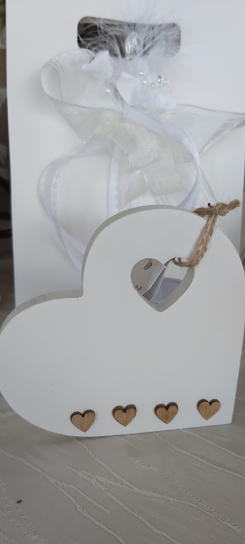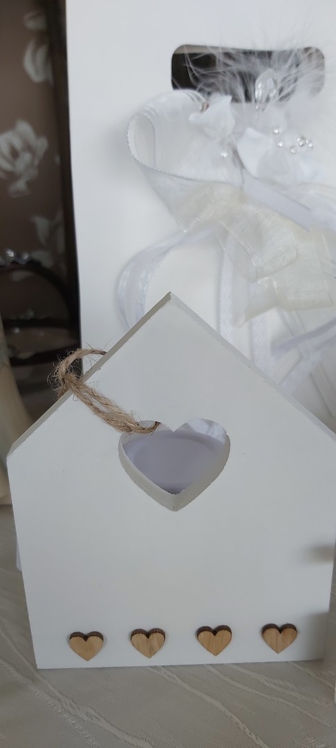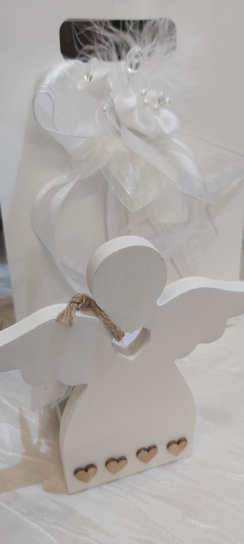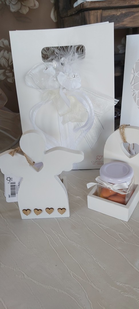 La bomboniera viene finita con busta e nastri decorativi (in foto bianco)