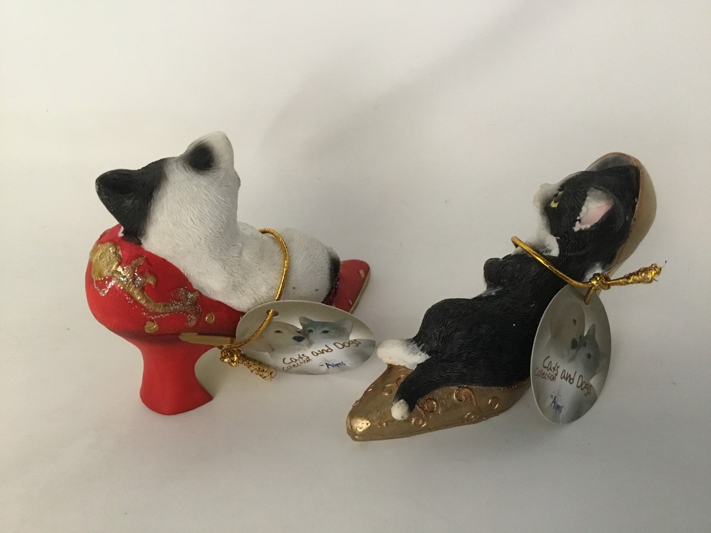 Bianco maculato di nero dentro la scarpa rosso e oro