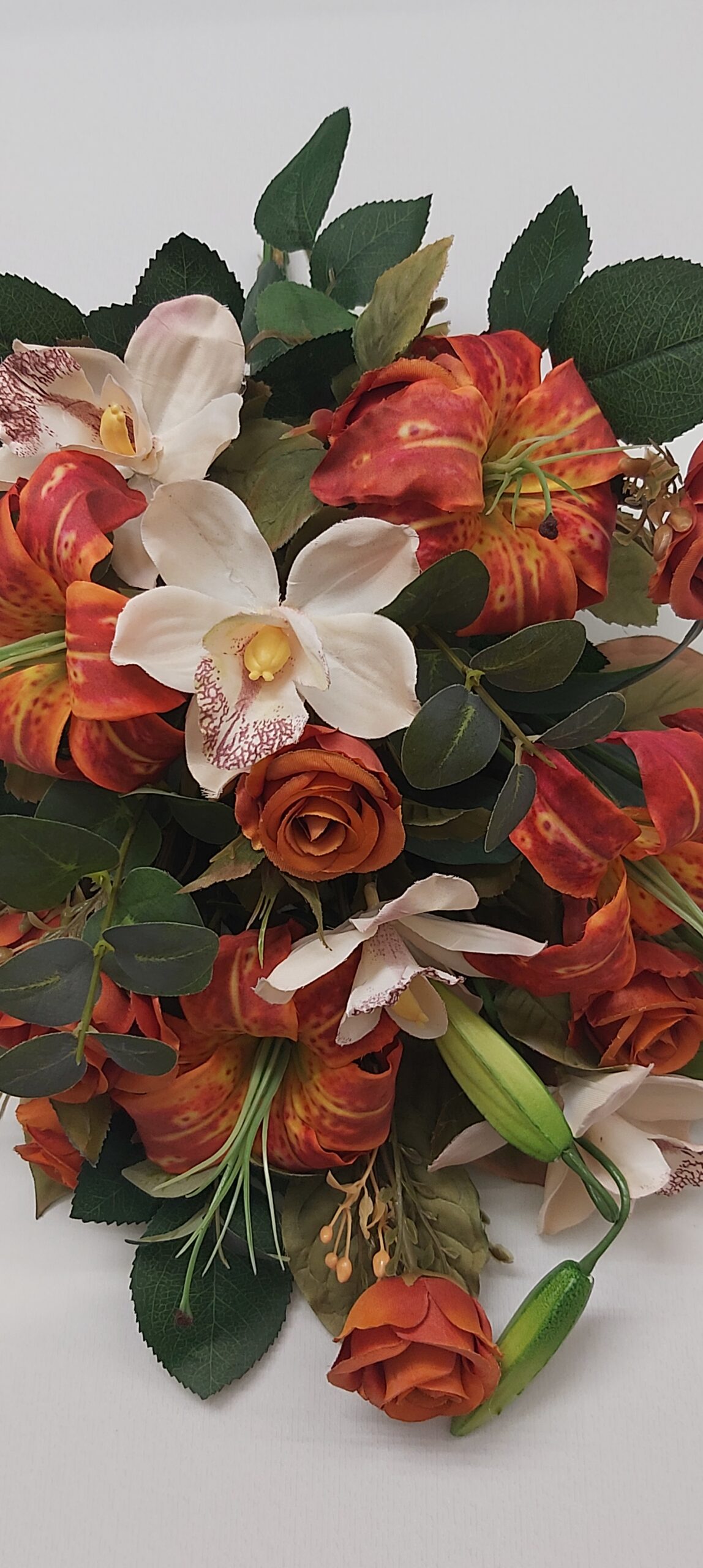 Mazzo fiori finti con giglio arancio