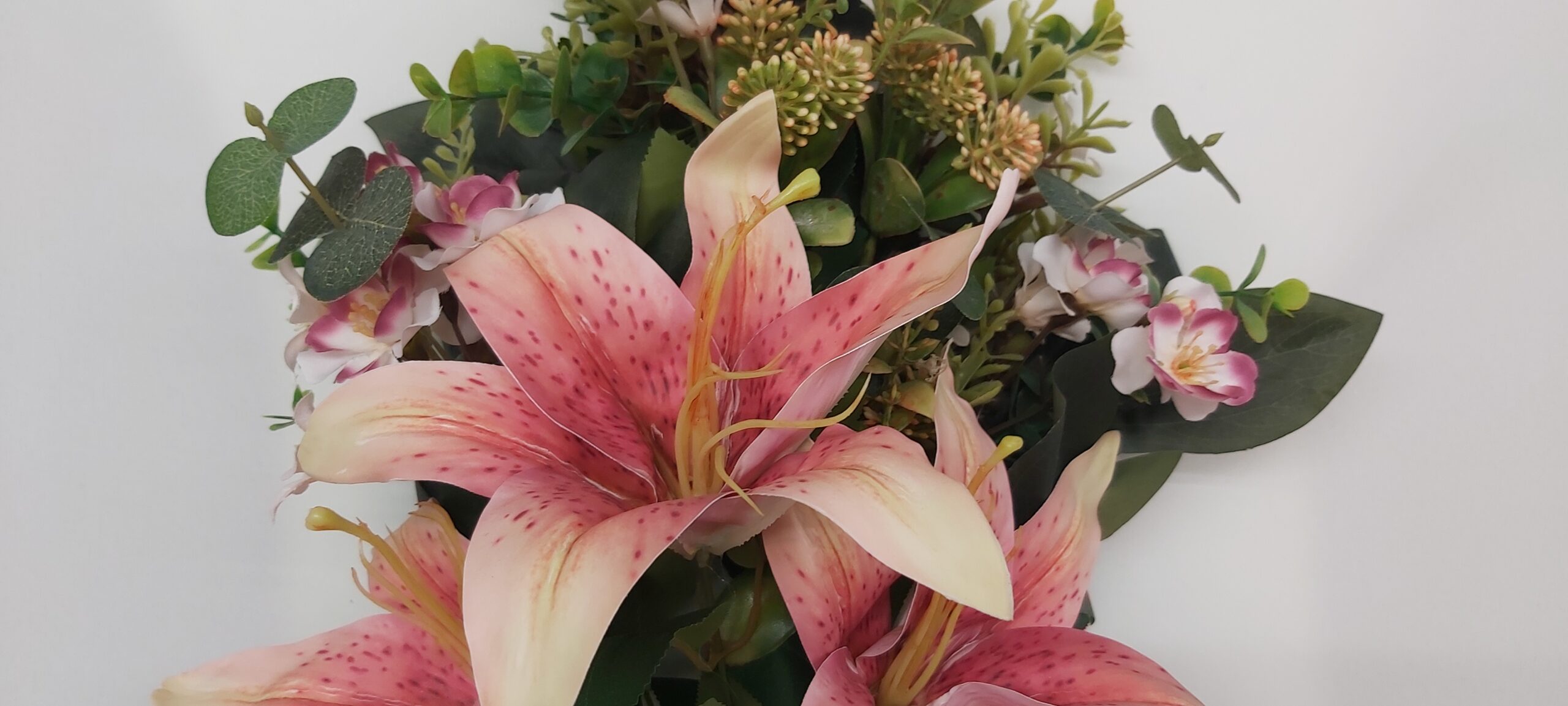 Mazzo floreale finto con gigli rosa