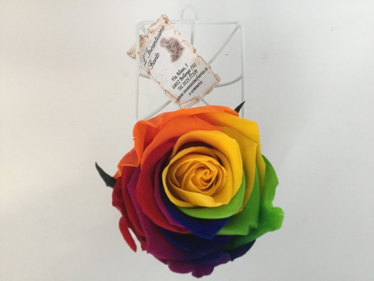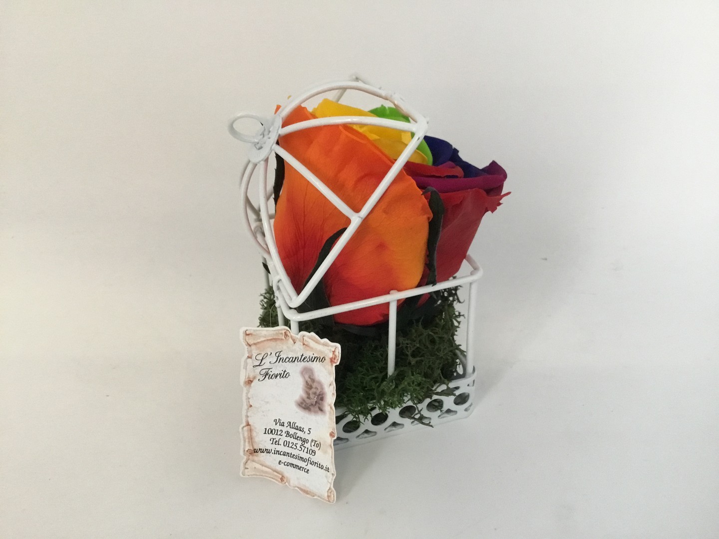 Rosa Stabilizzata Arcobaleno ” Gabbietta Bianca”