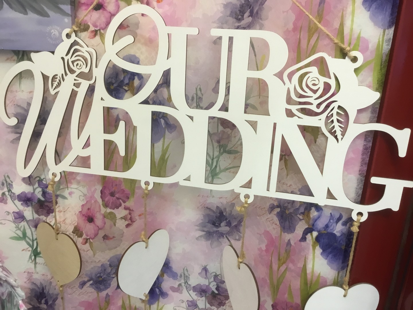 in legno con cuori appesi in cui scrivere o incollare cartoncino