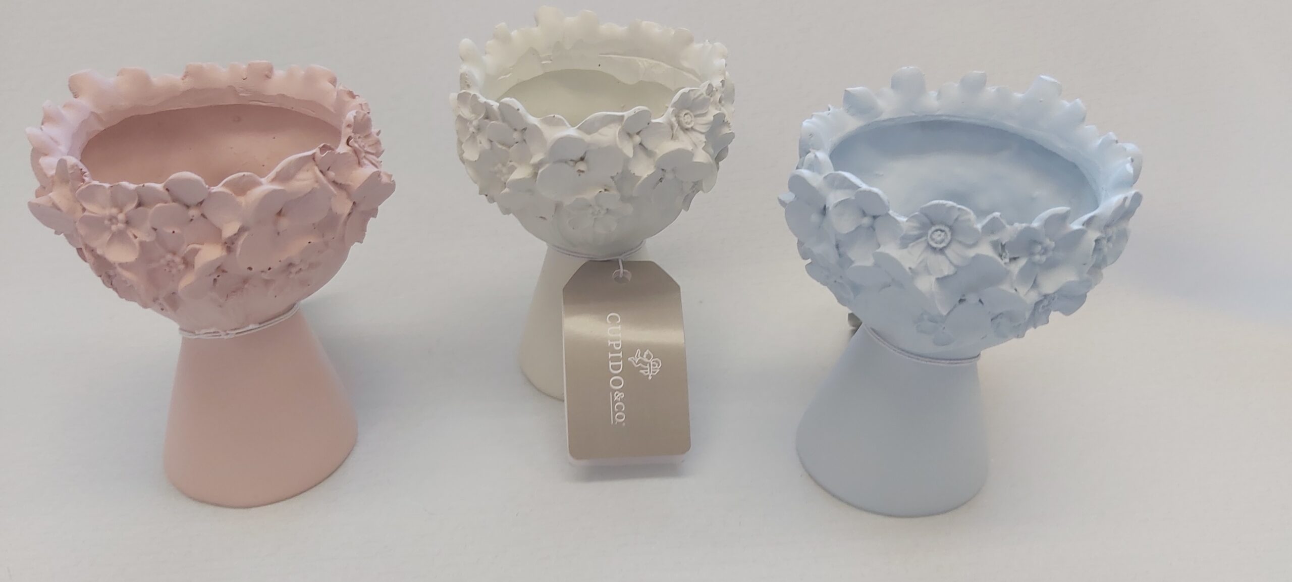 | vasetto testa | tris vasetti testa, vasetto testa bianco, vasetto testa rosa, vasetto testa azzurro |