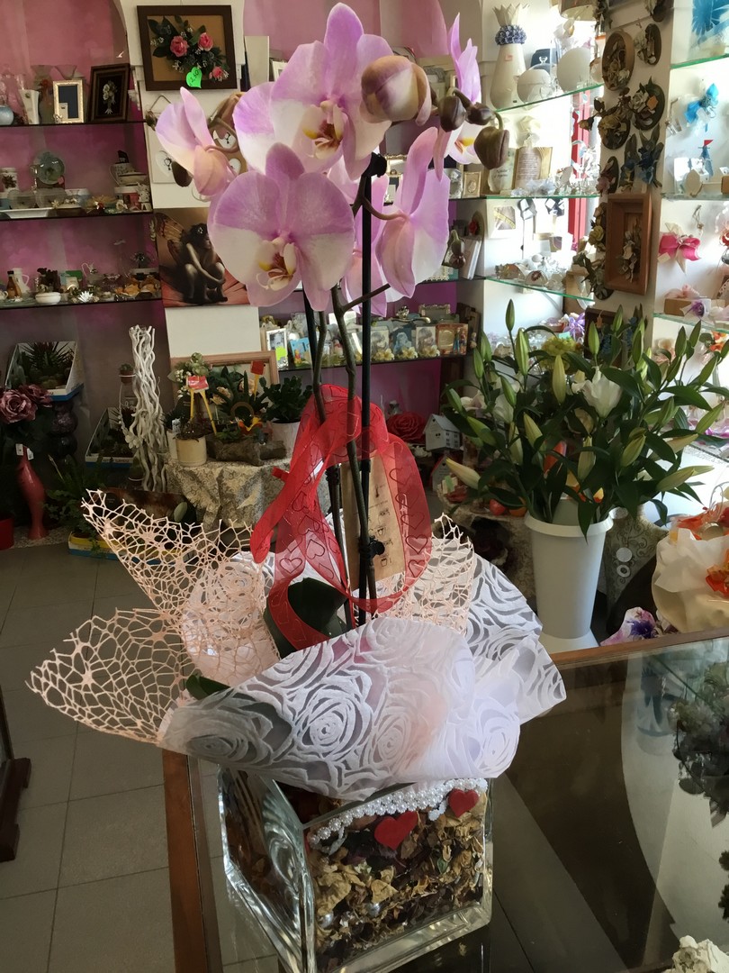 Vaso “trasparenze ” in vetro decorato con orchidea phalenopsis