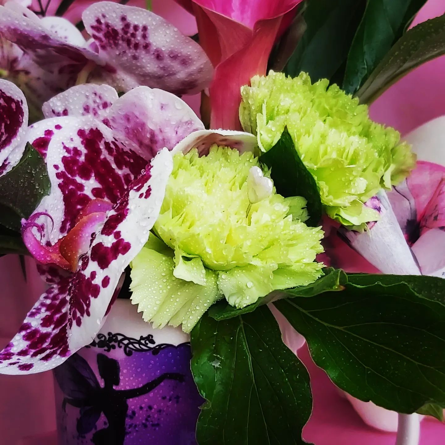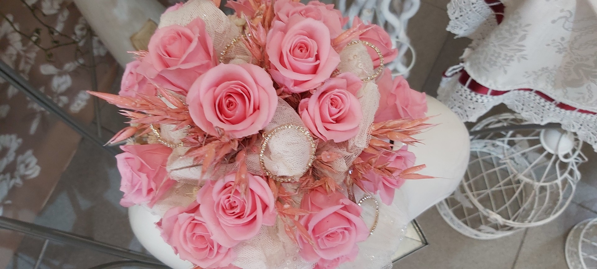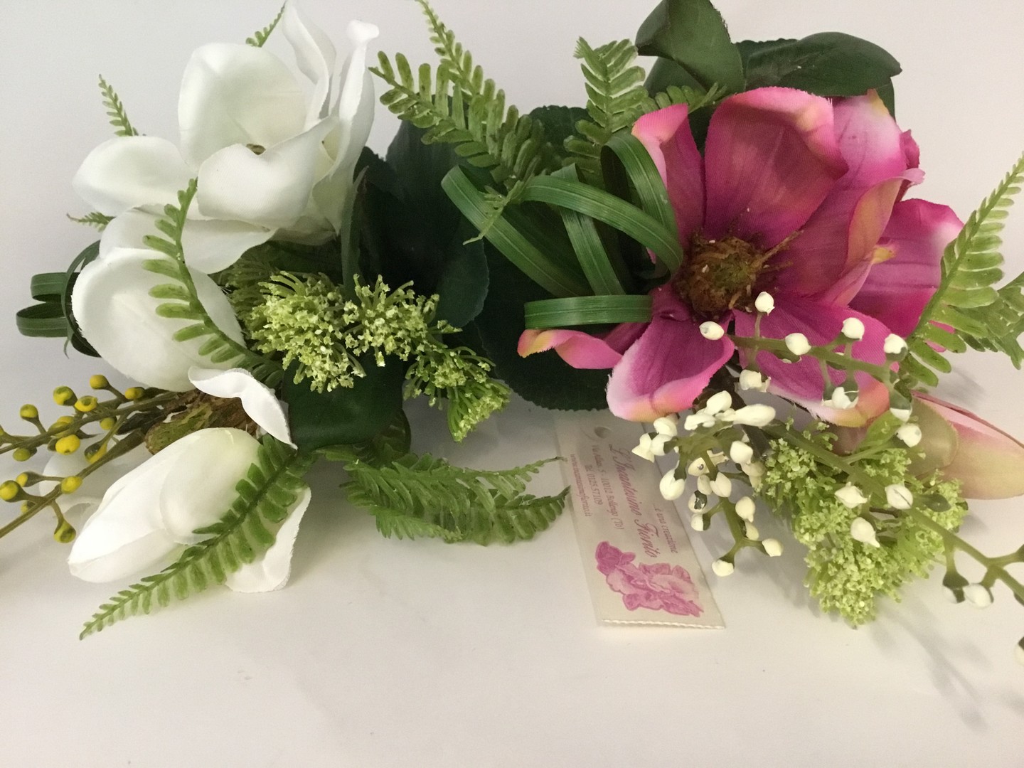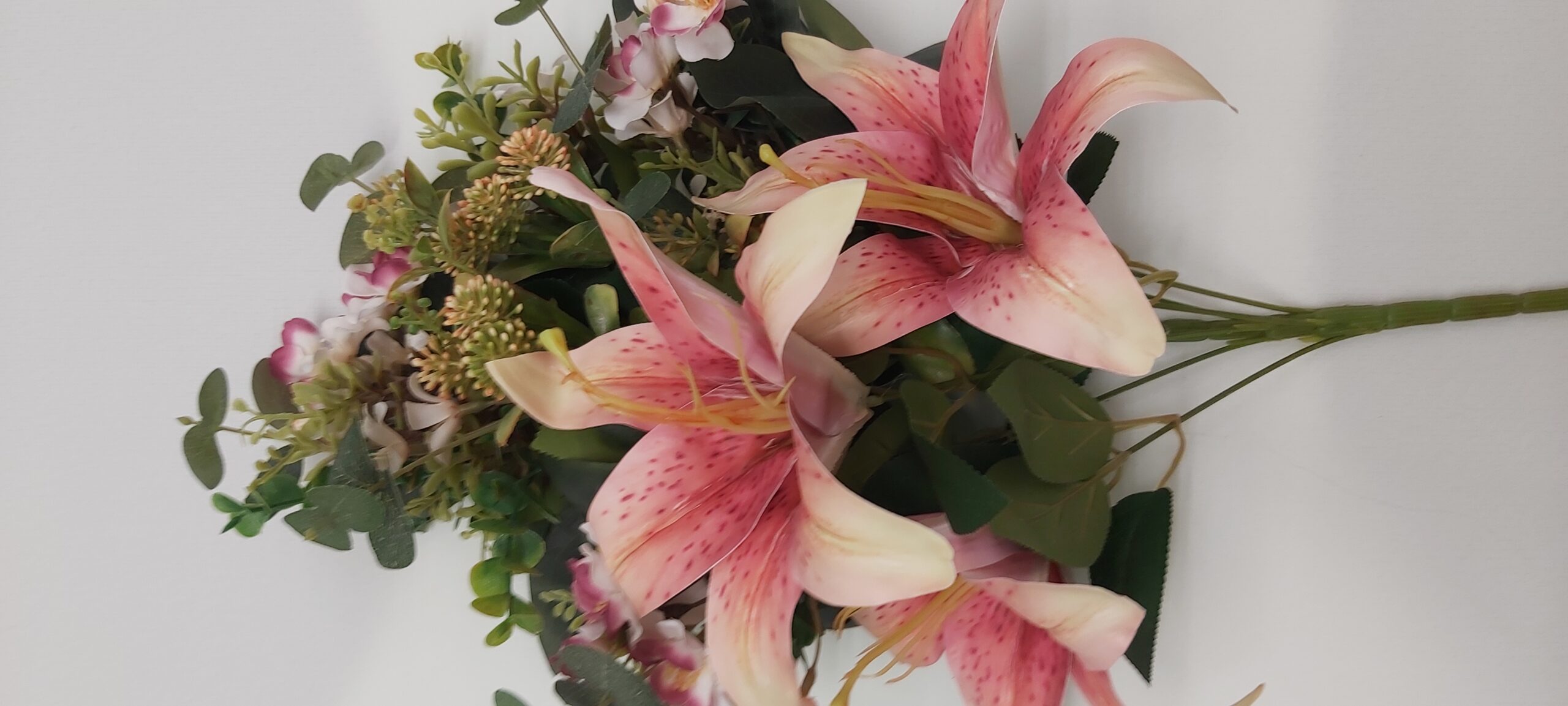 • Mazzo floreale finto con gigli rosa