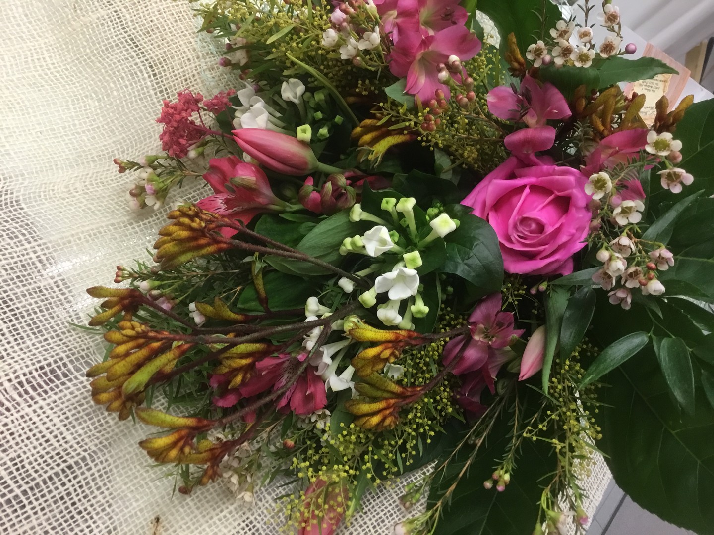 • MAZZO FIORI IN TESSUTO GIGLI ROSE PEONIE
