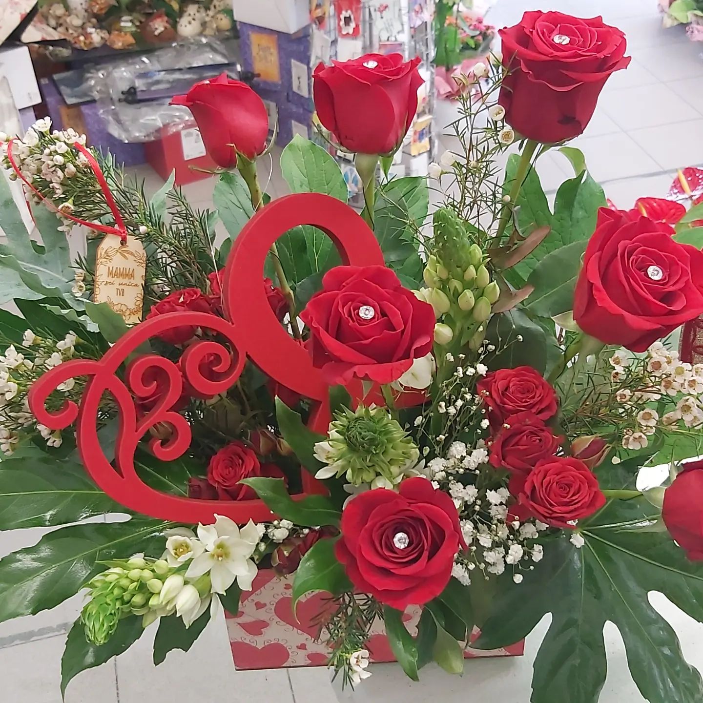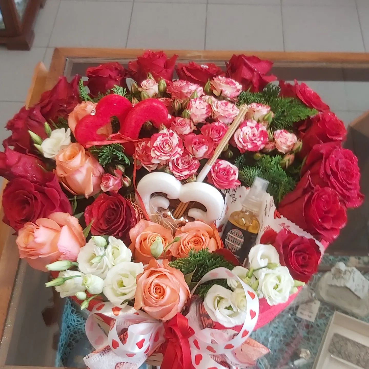 • Cuore di rose con profumo abbinato