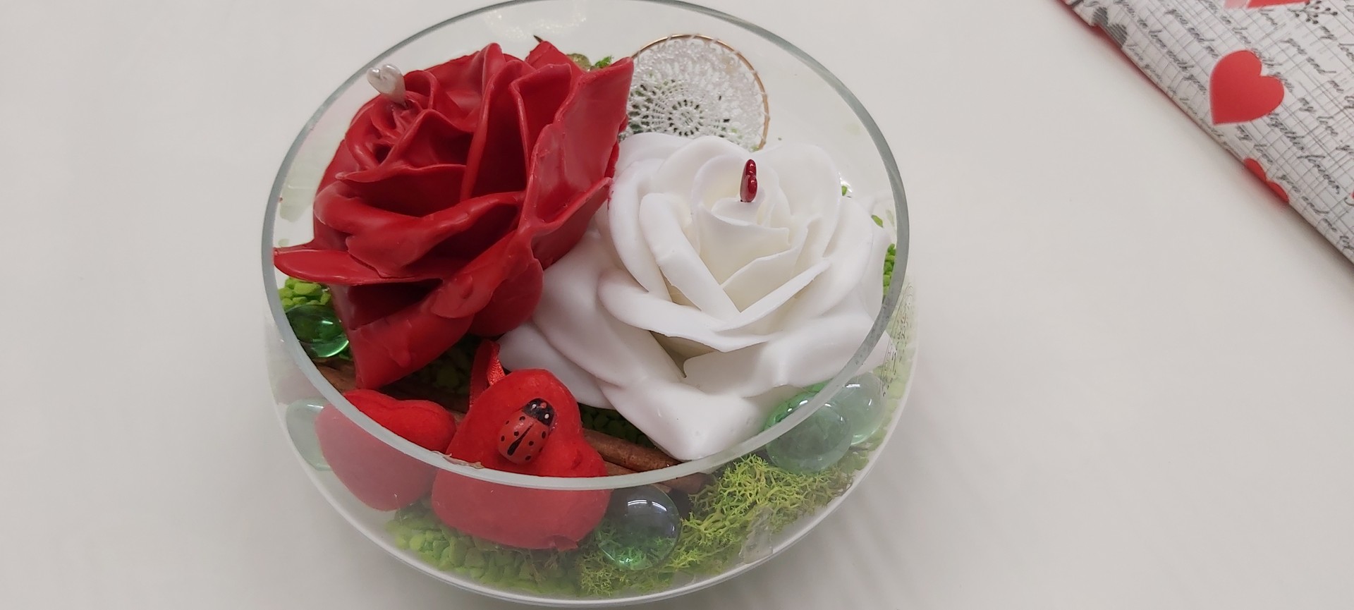 • Scatola cuori in legno con rose rosse